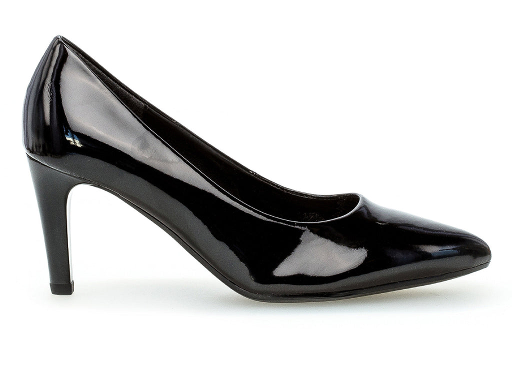 The Gabor 41.380.77 Dane is a stylish slip-on court shoe with a closed toe and a 7cm covered stiletto heel of additional height. Crafted from black leather and leather lined for comfort, it exudes sophistication and elegance. Stride in confidence in the Gabor 41.380.77 Dane from Gabor Shoes Ireland.