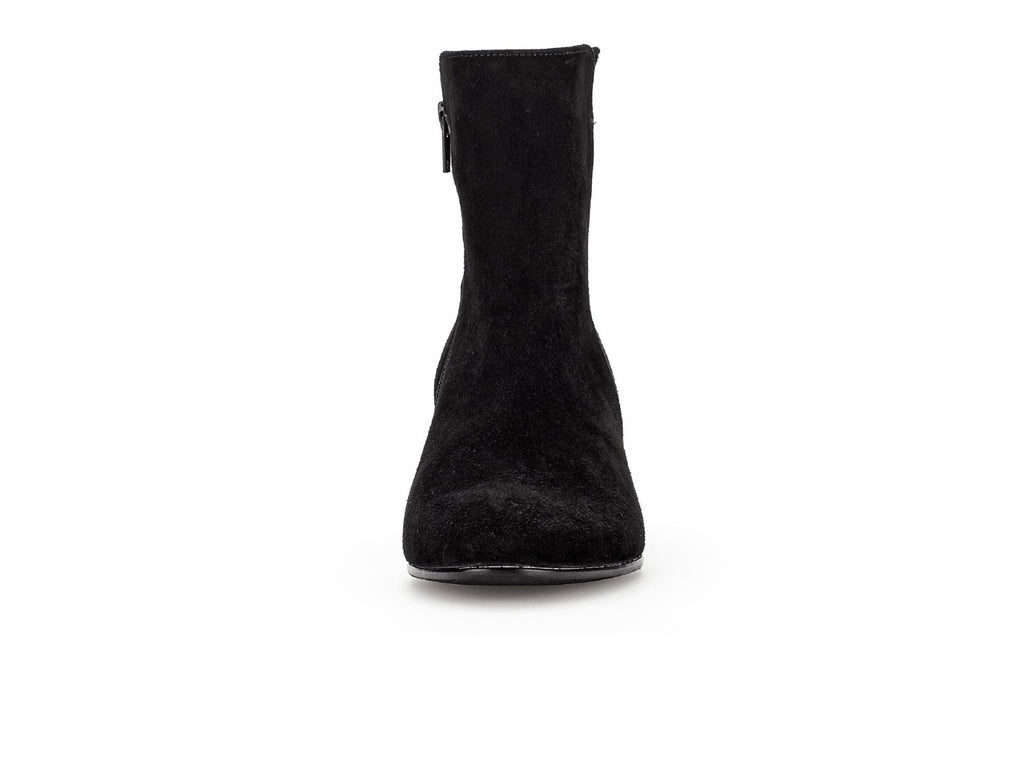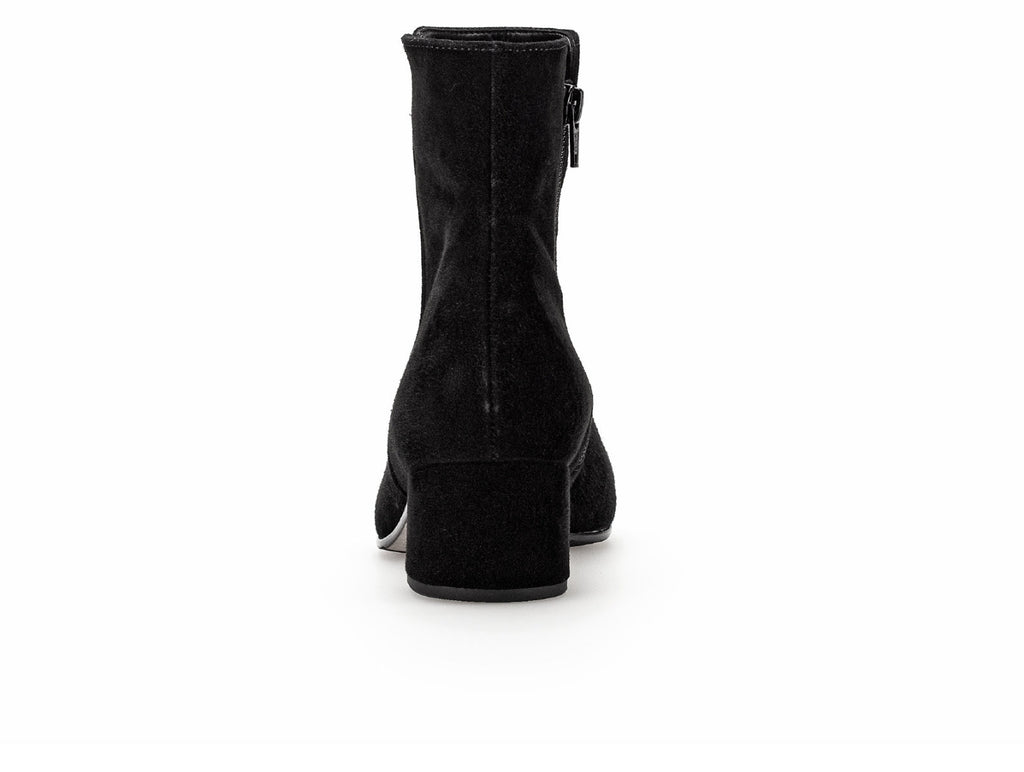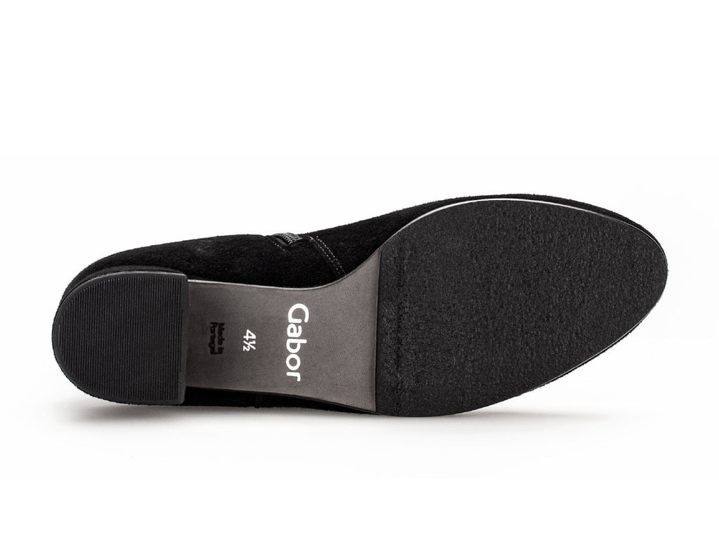 Refined and versatile, the Gabor 75.680.17 ankle boot in black suede is a timeless choice for both smart and casual wear.
