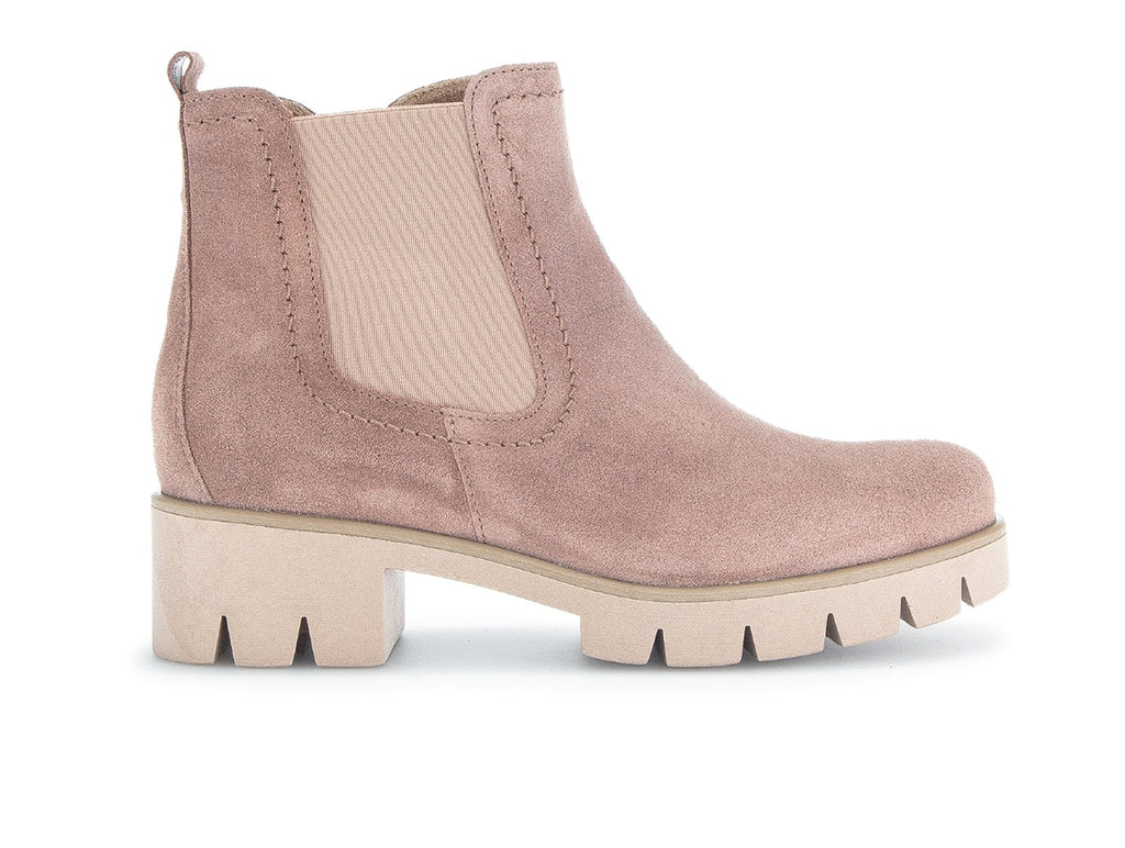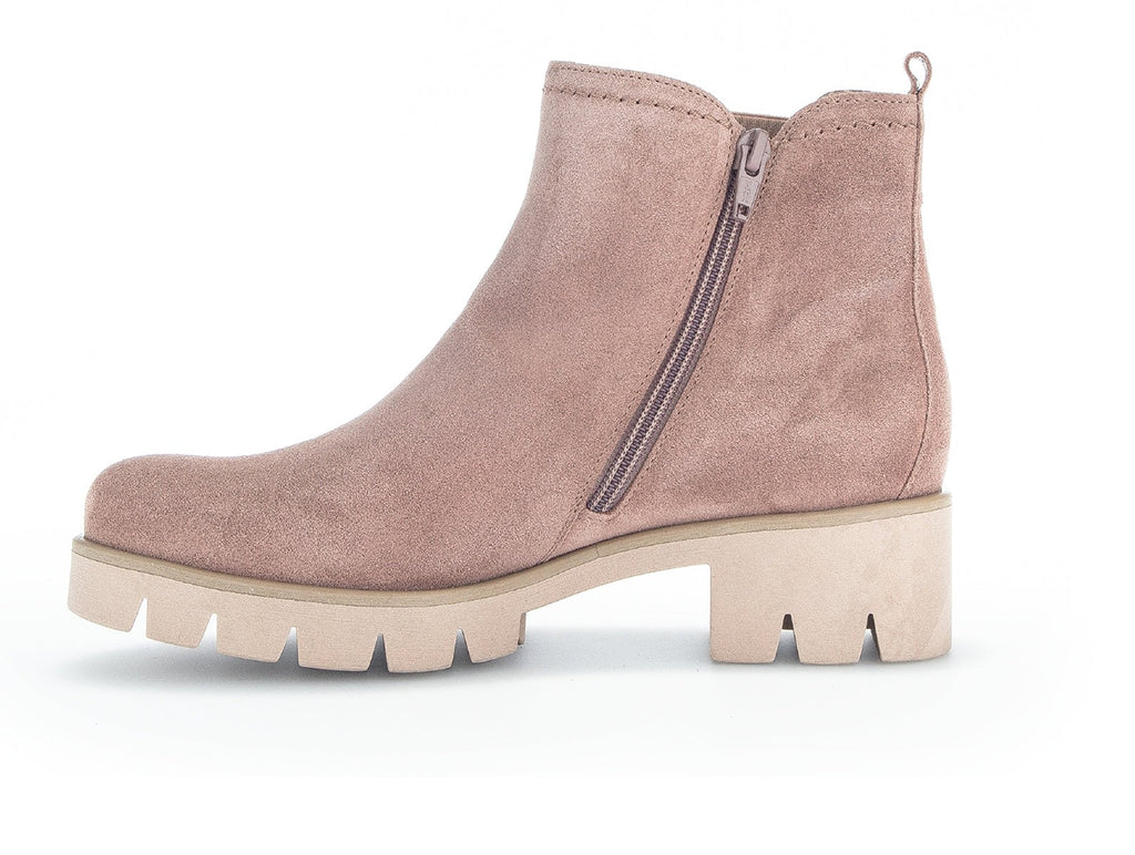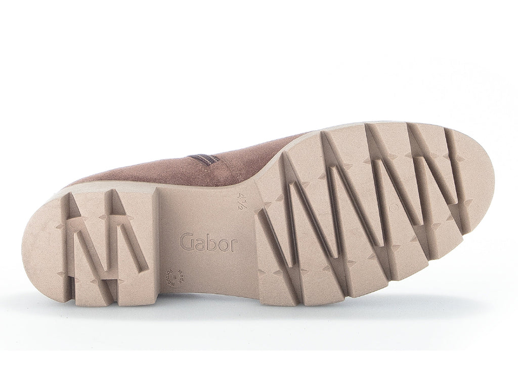 Expertly crafted by renowned European shoemaker Gabor, these suede ankle boots 31.710.10 Bodo in Dark Rose offer comfort and convenience. With an elasticated side panel, zip and a pull tab at the rear, slipping these boots on and off is a breeze. As part of Gabor's best fitting range your feet are sure to remain snug and comfortable all day. The chunky, modern look is completed with a cleated TR rubber sole. Don't miss out on the versatile Gabor 31.710.10 Bodo in Dark Rose from Walsh Brothers Shoes, Tralee.
