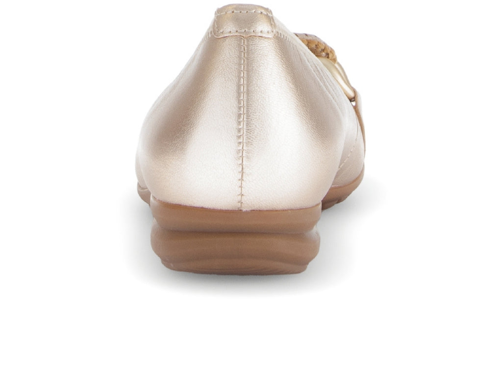 Enjoy timeless sophistication with the Gabor 62.625.82 Sabia slip-on shoes, designed for those who value both style and comfort. Featuring an chic gold finish and a decorative tonal chain trim, these shoes add a touch of elegance to any outfit. The elasticated top line ensures a secure yet flexible fit, while the classic round toe design provides a polished and versatile look, perfect for any occasion.