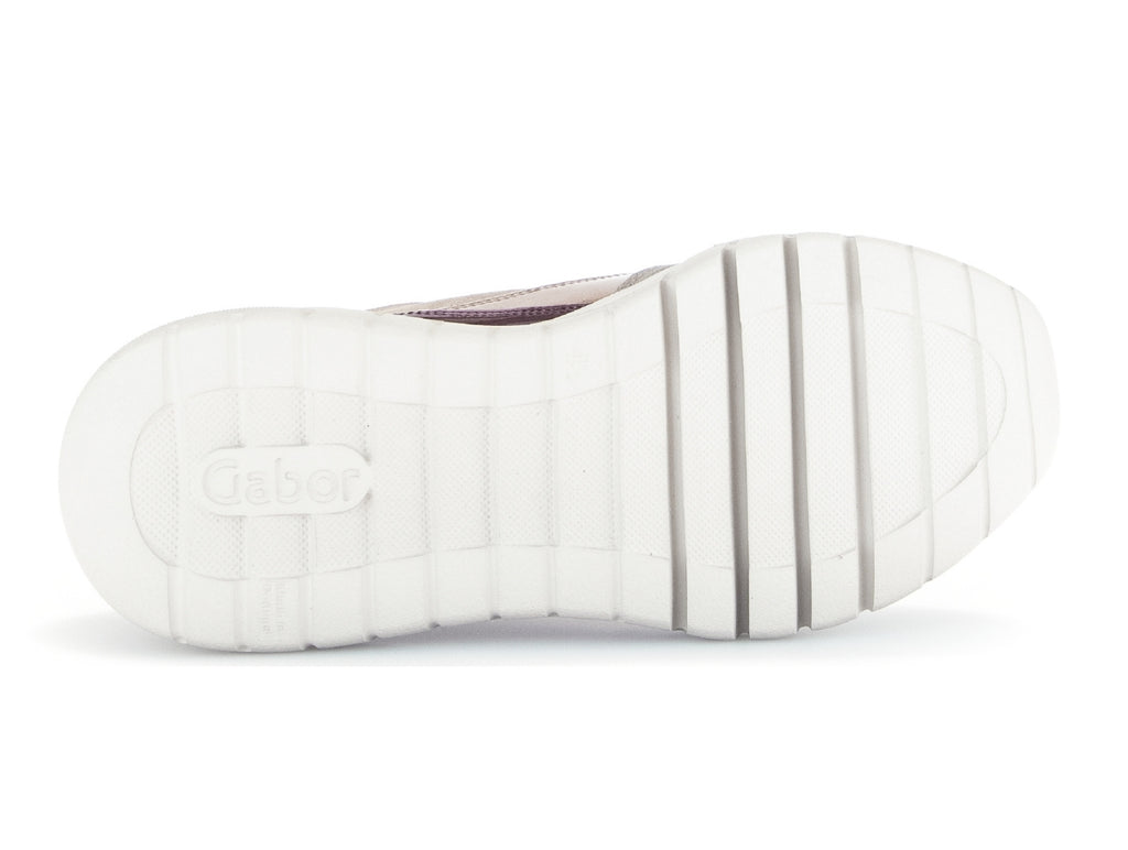 Introducing the Gabor 53.451.62 Widow, a modern trainer that combines style and comfort. Its plum and beige colourway and laced design add a touch of fashion, while the removable insoles and Gabor's Best Fitting Range ensure the highest level of comfort and convenience. The widened tread area at the ball of the foot and flexible traction outsole provide stability and support, making it the perfect choice for daily wear. Plus, with a 5 cm heel, you can add a little height without sacrificing comfort. Upgrade your footwear collection with the Gabor 53.451.62 Widow from Walsh Brothers Shoes, Tralee.