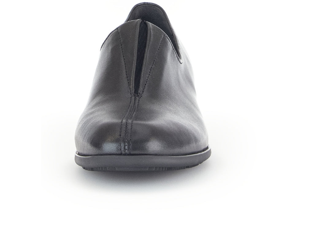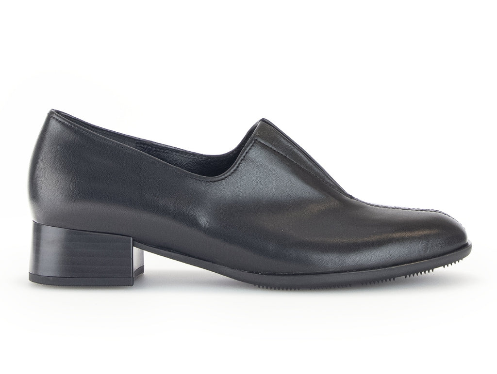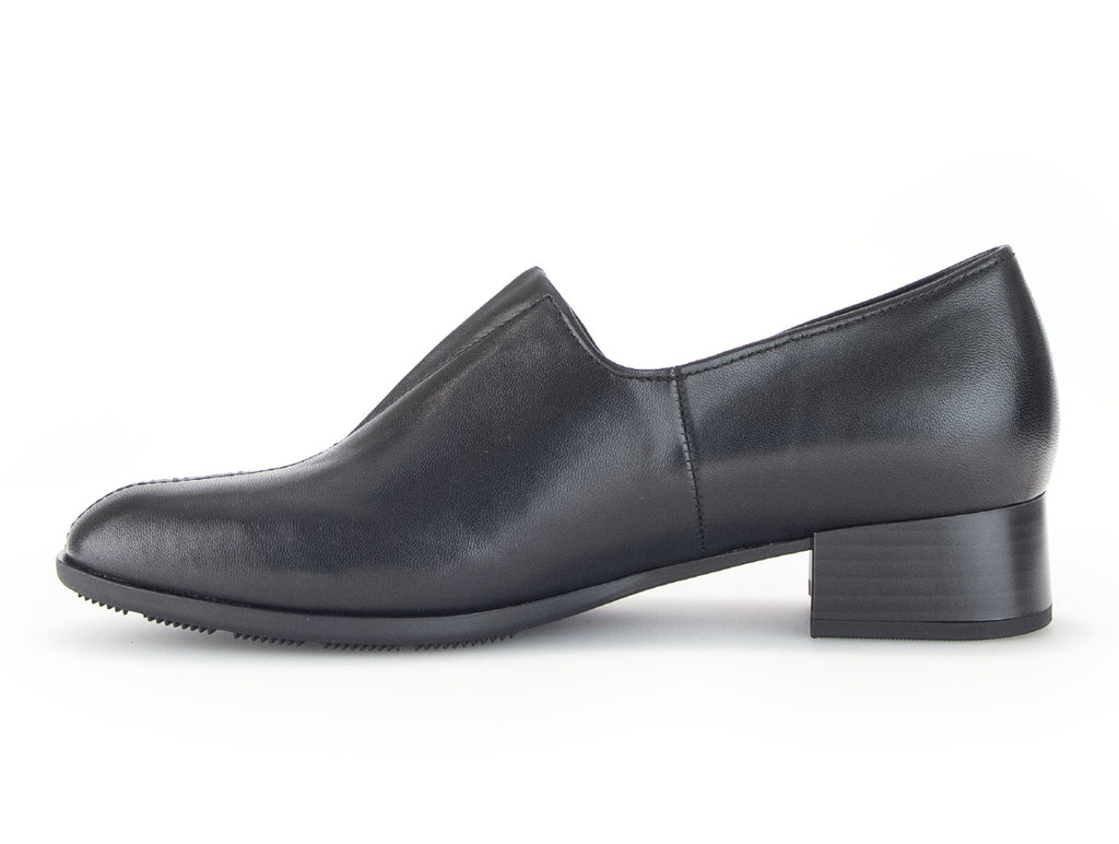 The Gabor 55.282.27 Riff shoe is a must-have for any wardrobe. Made of black leather, it features an elasticated “V” shaped centre gusset for added comfort and a slip-on design for easy wear. With a standard F width fitting and a block heel measuring 3.5 cm, this shoe offers both style and practicality for the fashion-forward individual.
