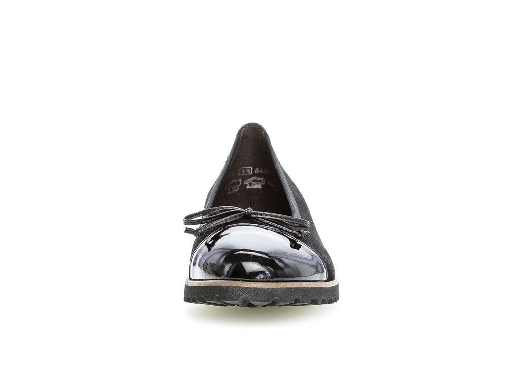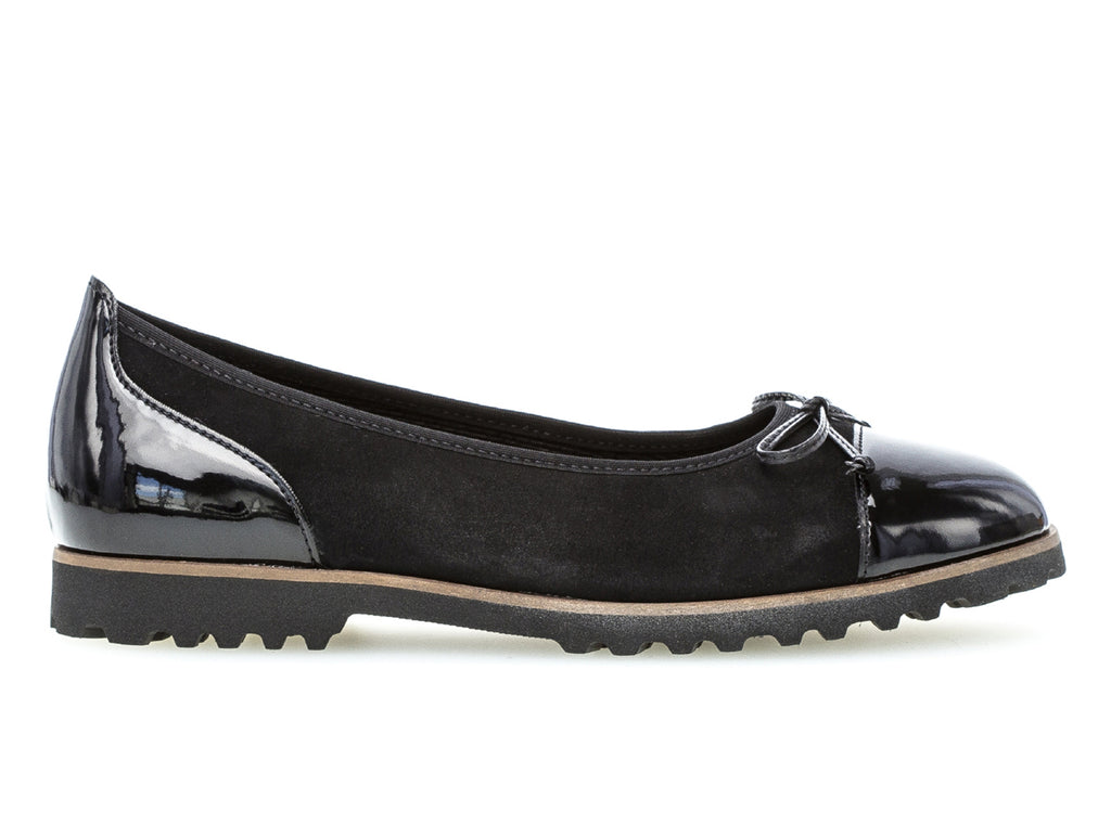 The Gabor 84.100.37 Black pumps are an elegant shoe with beautiful bow detail, adding to the intrinsic style of the shoe. They feature textile lining, a padded footbed, and 1cm heel for maximum comfort, enhanced by the natural interior design of the shoe. Here at Gabor Shoes Ireland we think the Gabor 84.100.37 black pumps would be great paired with a dress with black detailing on a special occasion for a fashionable look.