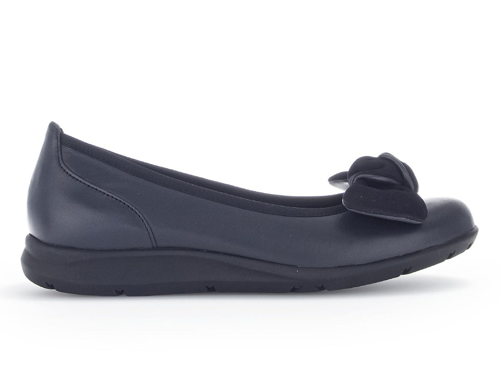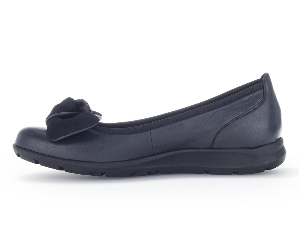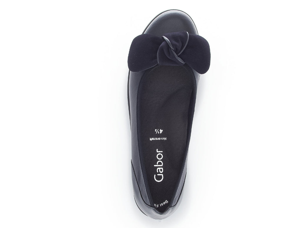 Step into optimal comfort with the Gabor 24.172.26 in Navy slip-on ballerina style shoe. Featuring Gabor's best fitting range, it has an easy-on, easy-off design and a pretty bow on the toe. An integrated air cushion provides shock absorption to ease stress on joints, while the widened tread area and ergonomic design ensure natural foot rollover. Here at Gabor Shoes Ireland we hope you treat yourself to the ultimate luxury of comfort with the Gabor 24.172.26 in Navy.