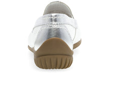 The Gabor 66.090.50 white leather moccasin combines timeless design with modern flair, featuring a sleek silhouette and subtle silver accents on the heel and sides. Crafted from premium leather, this slip-on shoe offers both style and convenience, enhanced by prominent stitching details that add a touch of sophistication.