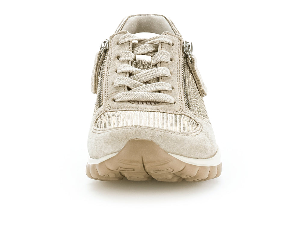 Experience the unique comfort and flexibility of Gabor's Rollingsoft 26.968.83 in Sabbia Kombi. With innovative rolling motion technology, it effortlessly moves with each step you take. Lightweight, breathable and cushioned, each movement is a joy for your feet. Laced for a secure and personalized fit, it's the perfect everyday companion. Here at Walsh Brothers Shoes we know you will roll into comfort with Gabor's Rollingsoft 26.968.83 in Sabbia Kombi
